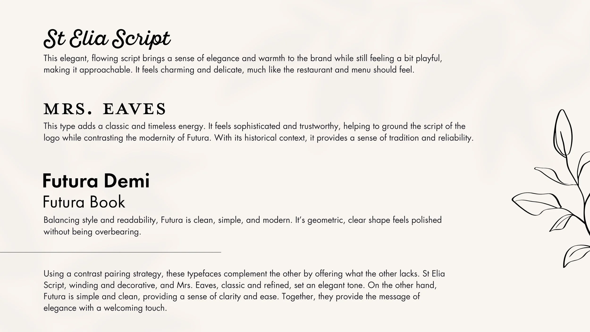 What makes for a successful menu? Clear, legible typography that is representative of the cuisine. Typography has become a passion of mine and exploring various pairings and settings for this project was a joy. From delicate pastels to evocative type, this menu design blossoms with charm.
